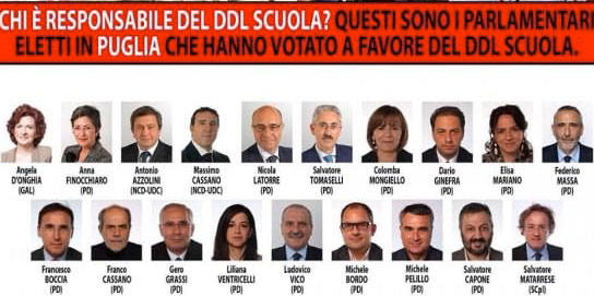 Compagni di merende, Imbroglioni e Truffatori, Politica, Teste di Cazzo ECCO ALCUNI DEI MAIALI CHE HANNO VOTATO PER “LA BUONA SCUOLA” by Polit • 13 Luglio 2015 Purtroppo si tratta di un elenco incompleto. L’iniziativa di pubblicarne le identità è infatti una iniziativa dei “5stelle” della Puglia. Ci auguriamo di potere aggiornare quanto prima l’elenco.